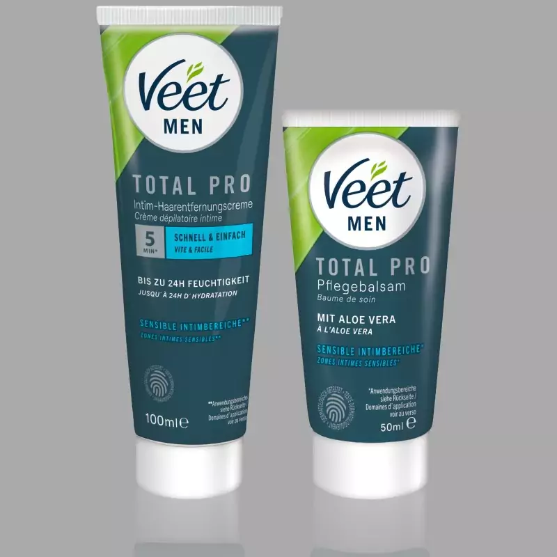 Veet Men Total Pro™ Intimate Hair Removal Set ir īpaši izstrādāts lietošanai jutīgās intīmajās zonās. Depilācijas krēma intīmai zonai un kopjošā balzama ar alveju kombinācija nodrošina rūpīgu apmatojuma noņemšanu bez iegriezumu riska, kā tas var notikt skūšanās gadījumā. Rezultāts ir gluda, kopta āda tikai dažu minūšu laikā. Komplekts kā depilācijas krēms intīmai zonai ir pielāgots jutīgas ādas īpašajām prasībām un ir ideāli piemērots kā depilācijas krēms vīriešiem.