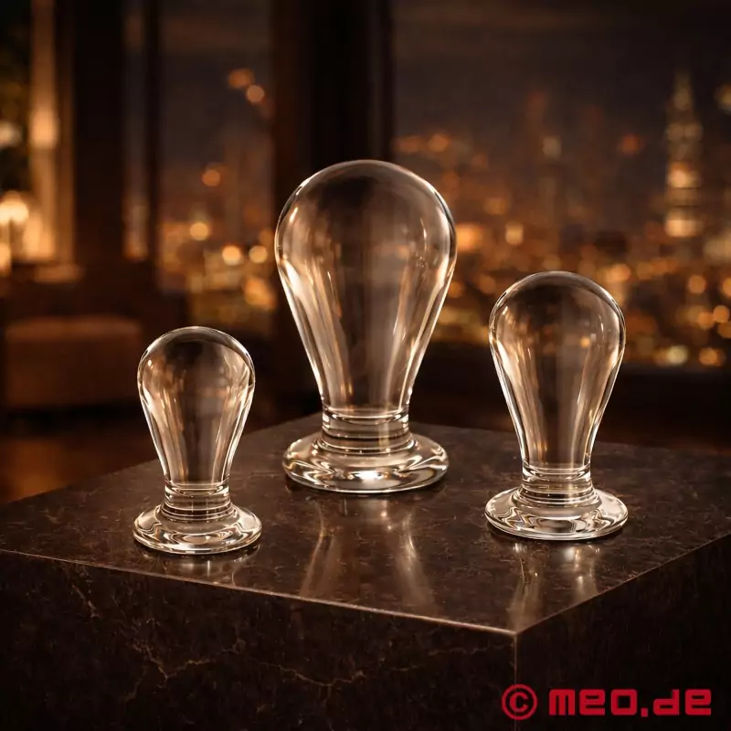 Ar šo anālās izplešanas komplektu jūs varat trenēt savu anālo atveri visam dūrienam! Mūsu anālie spraudņi pastāvīgai anālai izplešanai pārsteidz ar anatomiski perfektu formu un izcilu materiālu: mūsu izmantotajam nedūstošajam borosilikāta stiklam ir spoguļgludi gluda virsma, un to ir īpaši viegli ievietot anālajā atverē. Ar dažiem pilieniem EZ2FUCK, MEO lubrikanta uz silikona bāzes, pat lielāko no trim anālajiem tapām var ievietot bez problēmām.