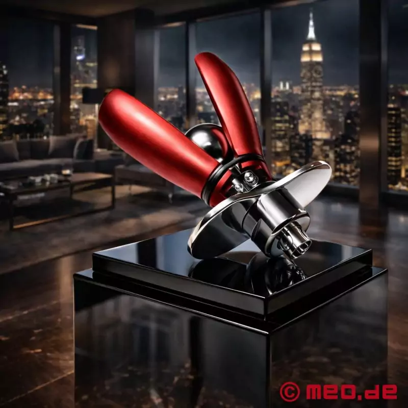 Der Anal Master besteht komplett aus Edelstahl und Aluminium, lediglich ein Gummiband an der Unterseite des einfügbaren Teils wurde Platziert um die nötige Mechanik zu schützen. Die aufspreizbaren Zinken sind Rot und ähneln Blütenblätter. Sie sehen Optisch sehr Schick aus!