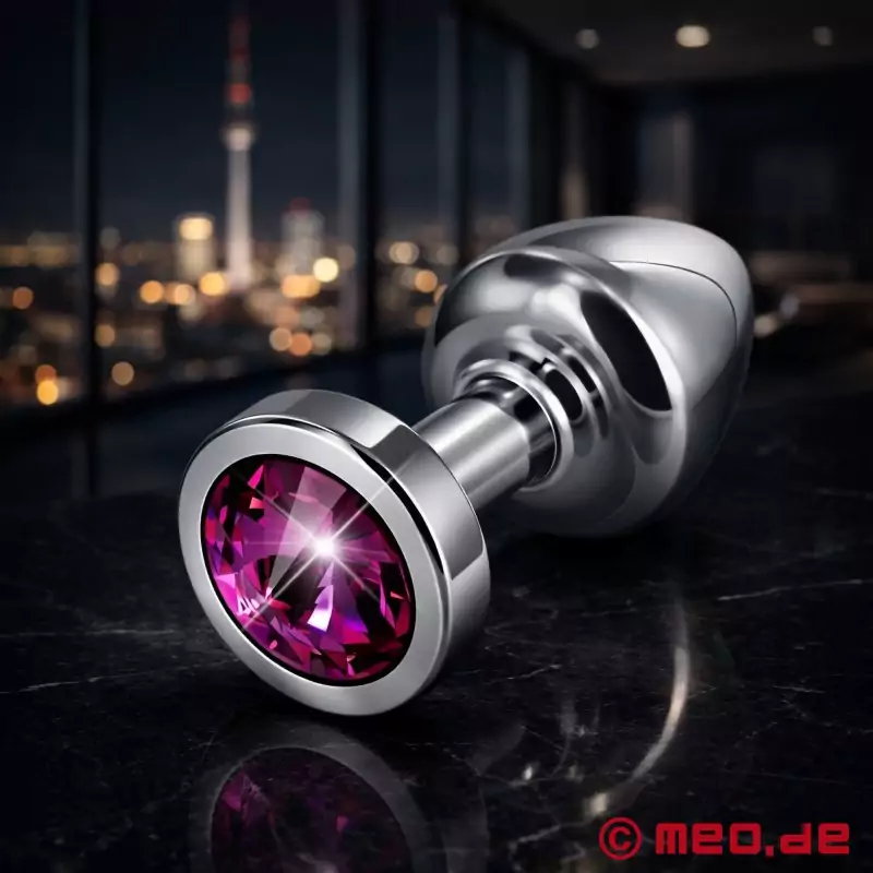 This time, courtesy of MEO.de, I got in my mail a toy made of a material I had never experienced before: a metal butt plug, with a sparkling purple jewel on its base.