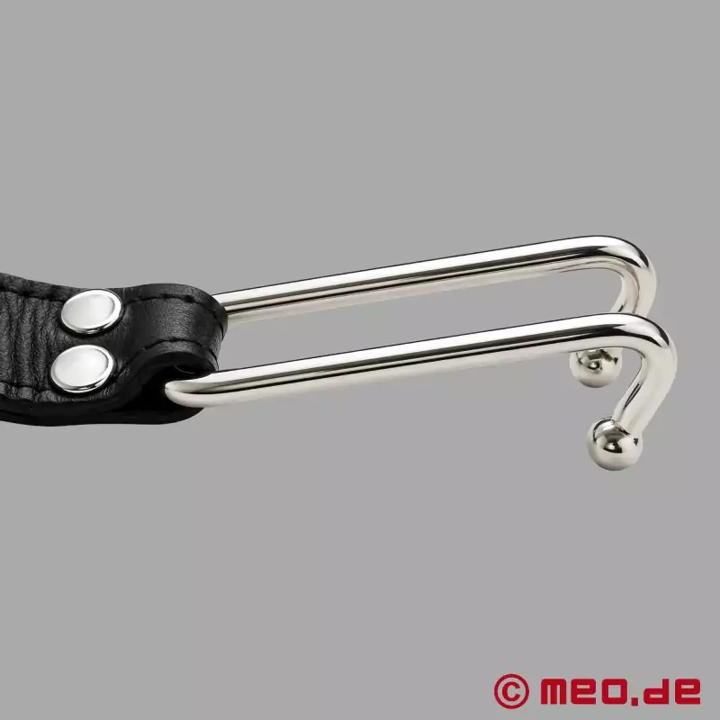 MEO® DominateMe™ slēdzamā ādas apkakle ir aprīkota ar papildu siksniņu ar deguna āķi, tāpēc tā ir īpaši piemērota intensīvai sasaistīšanai un dominēšanai. Augstas kvalitātes īstas ādas, nerūsējošā tērauda un augstākās kvalitātes apstrādes kombinācija, kā arī mērķtiecīga galvas vadīšana padara šo BDSM aksesuāru par īpaši efektīvu izvēli BDSM sesijām, kuras raksturo kontrole, uzticība un skaidra varas dinamika.