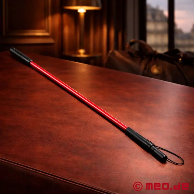Jūs vēlaties atstāt savu nospiedumu? Tad Daemonium ir īstā izvēle tieši jums. Daemonium DeLuxe nūjiņa, kas izgatavota no sarkani anodēta alumīnija, ir ideāls klasiskā jāšanas rīkstes un stingrā BDSM nūjiņas apvienojums - radīta precīzai dominēšanai. Gan maigi sitieni, gan sāpīgi sodi - šis aksesuārs no mūsu HURTME sērijas vienmēr būs precīzs. Vinila rokturis droši iekļaujas rokā, un nūjiņas slaidais gals nodrošina mērķtiecīgu iedarbību. Ideāli piemērots BDSM cienītājiem, kas mīl kontroli un meklē intensitāti - katrā kustībā, ar katru sitienu.