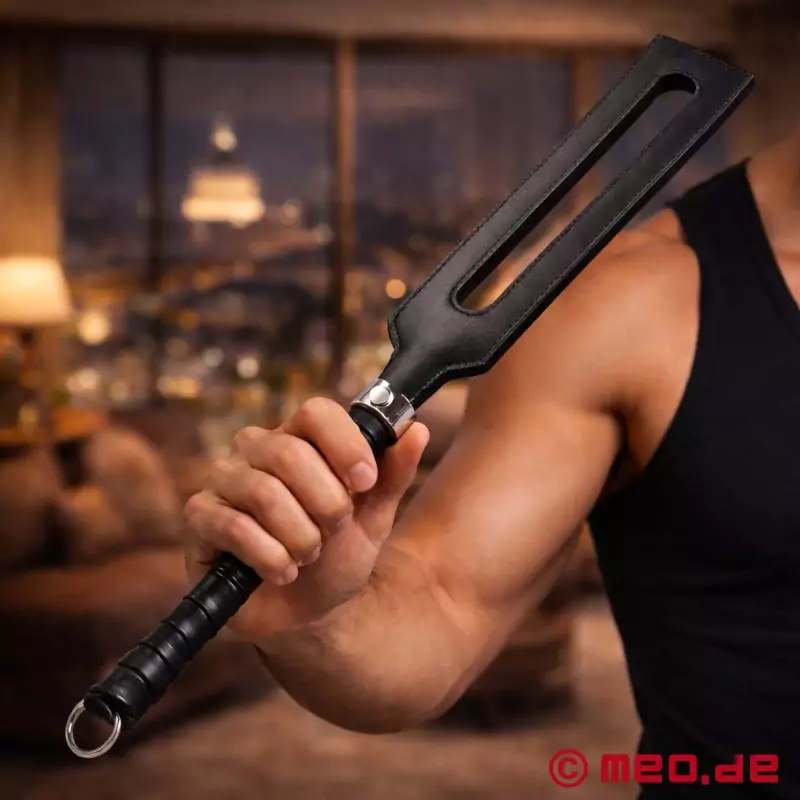Mūsu ādas BDSM paddle ir īpaši izturīgs, augstākās kvalitātes un ilgmūžīgs - pat intensīvi lietojot. Taisnstūrveida padziļinājums BDSM airiņa sitiena virsmā samazina gaisa pretestību un tādējādi nodrošina sāpīgus rezultātus, kad tiek sists ar sitienu. Tas nozīmē, ka ar nelielu piepūli var panākt intensīvu efektu.