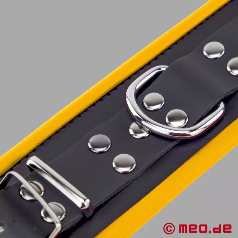 Ādas kāju dzelži, polsterēti - melni / dzelteni