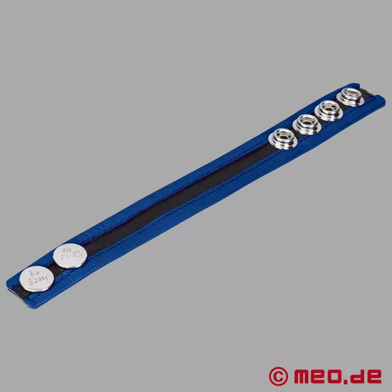 Ērti regulējams, klasisks dizains, vienkārša lietošana. Pateicoties spiedpogas aizdarei, šis melns/melns gredzens vienmēr perfekti pieguļ un to var precīzi pielāgot atbilstoši vajadzīgajam. Zilā versija Hanky Code tradicionāli tiek saistīta ar dominējošām seksuālām aktivitātēm.