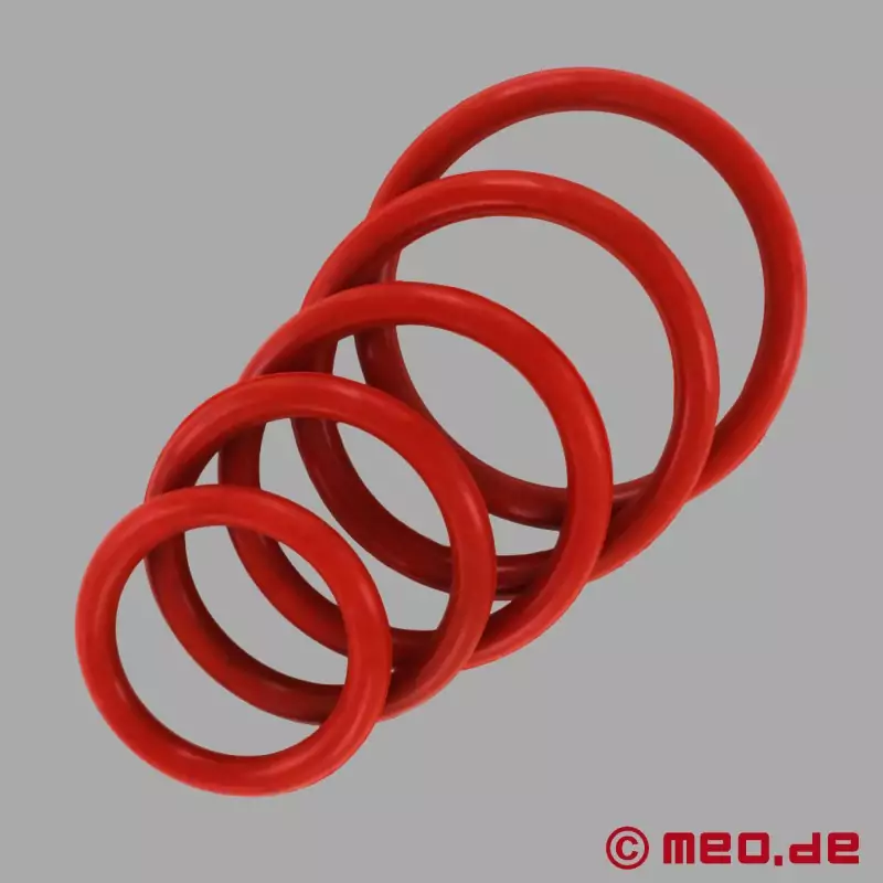Brīnišķīgais materiāls un mūsu smalki graduētais izmēru diapazons no 25 līdz 55 mm ø ļauj CAZZOMEO sarkanajam gumijas Cock Ring perfekti piegulēt.