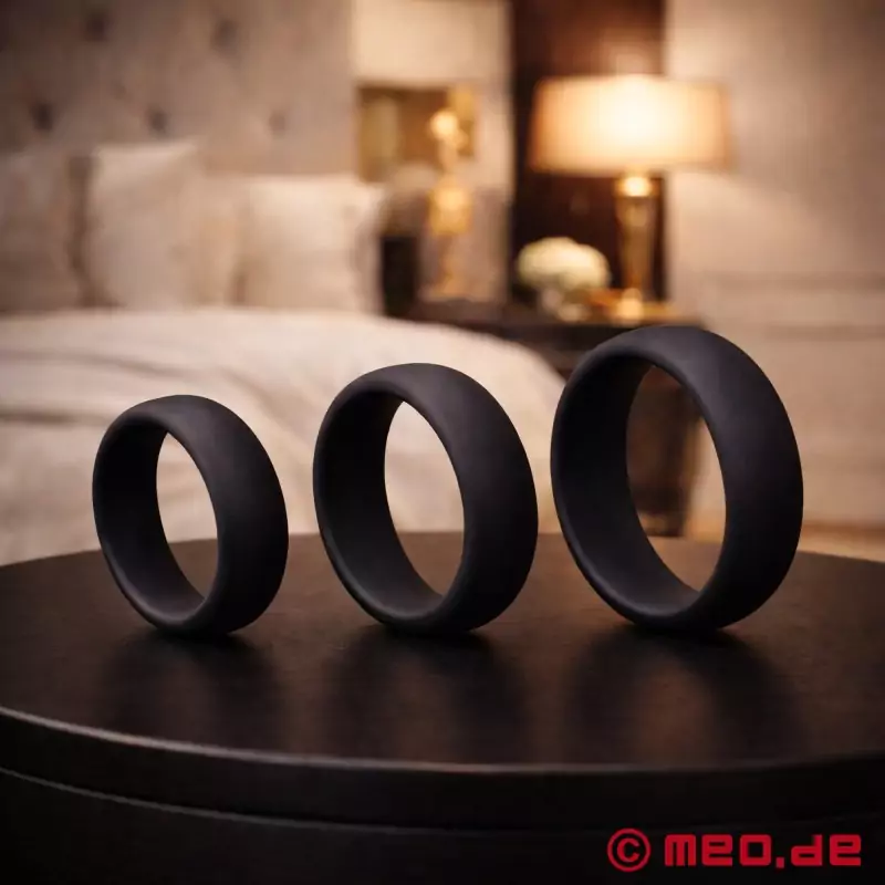 Šis trīs dažādu izmēru gredzenu komplekts ir ideāli piemērots ikvienam, kurš vēlas pastiprināt savu baudu un eksperimentēt. Mērķtiecīga saspiešana nodrošina stingru, cietu erekciju un ievērojami paildzina jūsu baudu. Neatkarīgi no tā, vai tie ir cieši, lai nodrošinātu maksimālu intensitāti, vai vaļīgi, lai stimulācija būtu maigāka - atrodiet sev piemērotāko un izbaudiet lielāku izturību seksa laikā un spēcīgākus orgasmus!