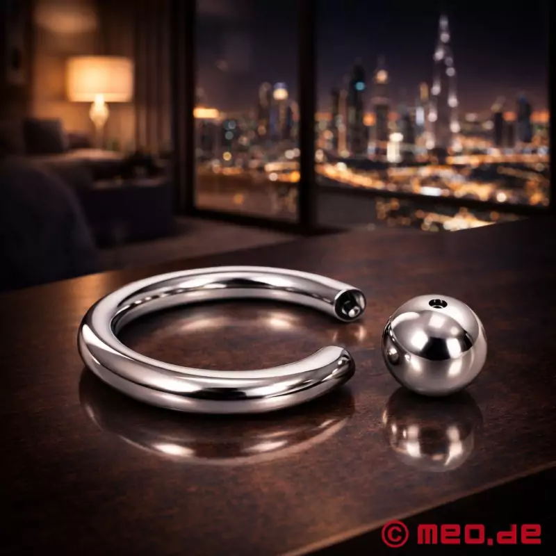 Šis augstas kvalitātes gredzens ar atskrūvējamu bumbiņu garantē visaugstākā līmeņa seksu. Anatomiskā forma nodrošina perfektu pieguļšanu, bet papildus pievienotā bumbiņa neizmērojami palielina stimulāciju, kad gredzena diametrs tiek vēl vairāk samazināts, un nodrošina īpaši cietu dzimumlocekli.