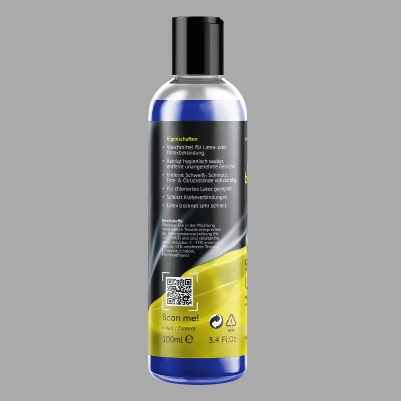 beGLOSS® Special Wash latex™ ir vegāns mazgāšanas līdzeklis, kas ātri, saudzīgi un efektīvi mazgā lateksa apģērbu pat zemā temperatūrā. Tas noņem eļļas un tauku paliekas, neitralizē smakas un optimāli sagatavo lateksa izstrādājumus pulēšanai vai uzglabāšanai. Ražots Vācijā.