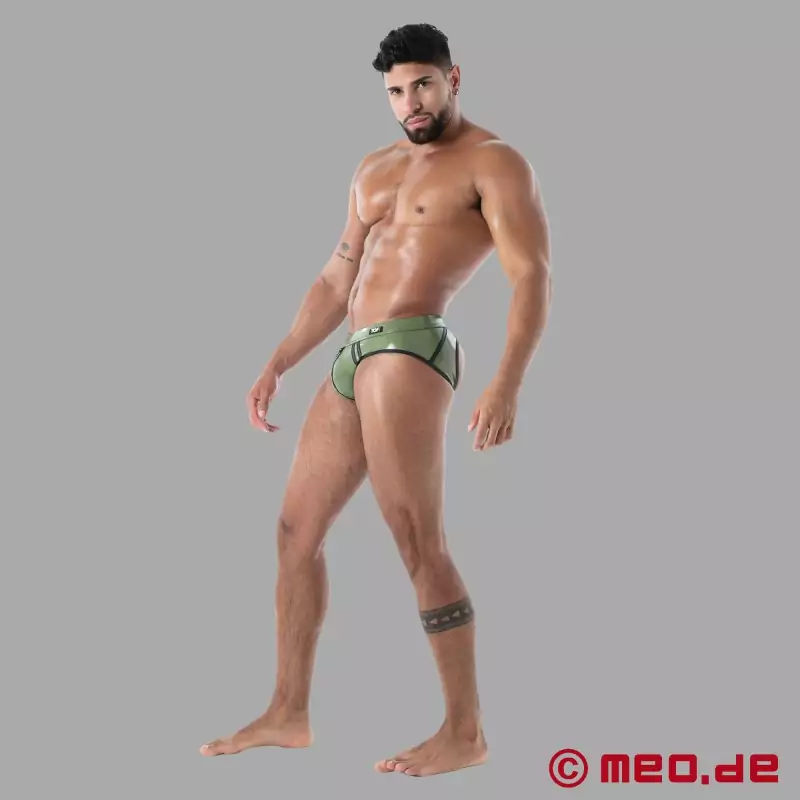 Haki krāsas Latex Bottomless Brief - SecondSkin™ - Parīzes lateksa apģērbs