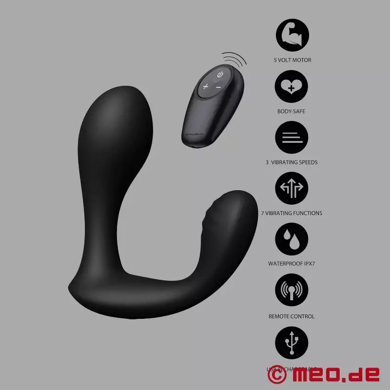 Mērķis sasniegts, prostatas orgasms priekšā: apjomīgais Bullseye™ prostatas stimulators nodrošina maksimālu intensitāti. Pateicoties tā ergonomiskajai formai, tas precīzi trāpa vīrieša G punktā, ar visu spēku masē prostatu un vienlaikus stimulē starpribu no ārpuses. Iespējami vairāki, dziļi orgasmi vienatnē vai kopā ar partneri. Viss ir ērti kontrolējams ar tālvadības pulti: desmit vibrācijas režīmi - no maigas vibrācijas līdz spēcīgiem impulsiem.