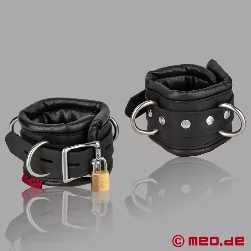 Slēdzami, polsterēti ādas roku dzelži - Black Berlin™ kolekcija, MEO®