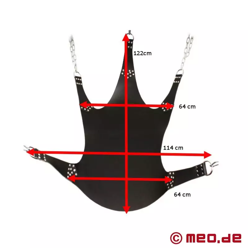 Ar MEO ® Slingu jūs varat izbaudīt īpaši dziļu penetrāciju ar minimālu piepūli un izmēģināt jaunas seksa pozas un anālo fistings. Slingu var uzkarināt slinga rāmī vai pie griestiem uz izturīgiem griestu āķiem (nav iekļauti komplektā), un to var izdarīt īsā laikā. Slingu var viegli noregulēt vajadzīgajā augstumā un leņķī, izmantojot karabīnes. Ideāli piemērots dažāda izmēra partneriem un daudzpusīgām pozām.