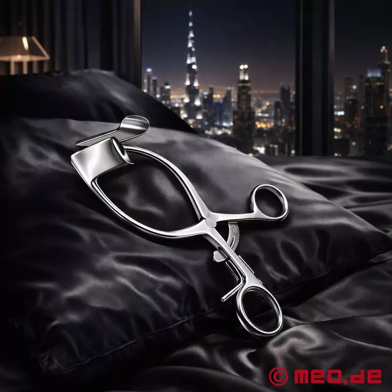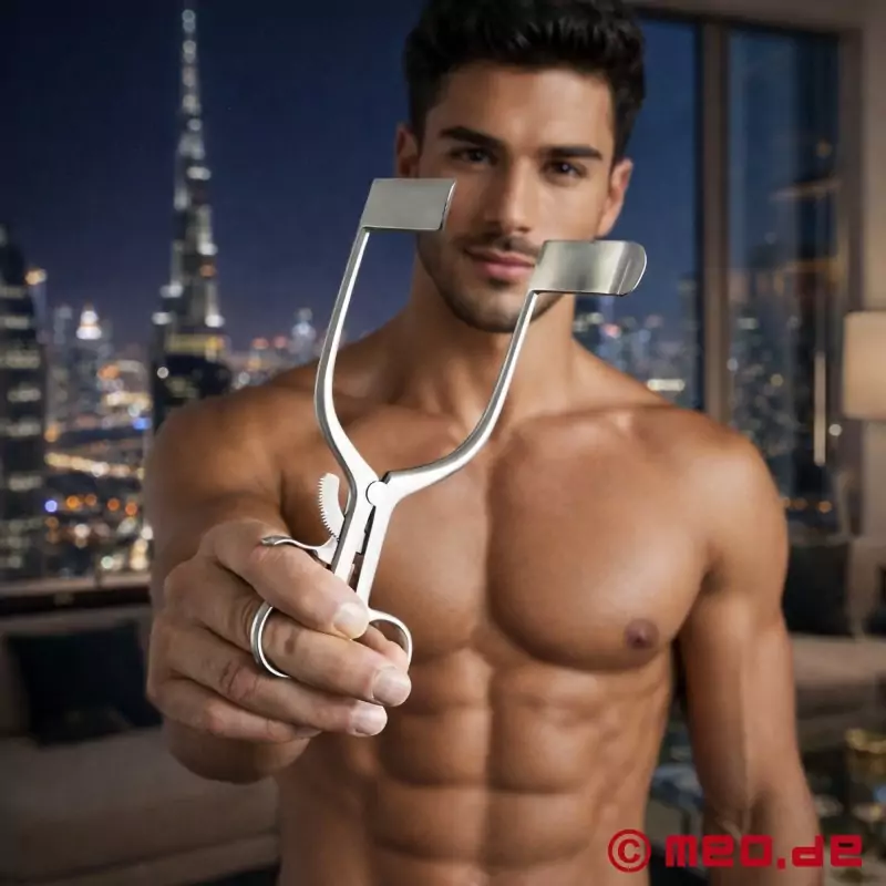 Šim stiepšanās instrumentam anālajai izplešanai ir praktisks rokturis ar vairākām klikšķu pozīcijām, tāpēc to ir ļoti viegli lietot kopā ar partneri vai patstāvīgi. Bezpakāpju klikšķināšanas pozīcijas ir ideāli piemērotas treniņiem. Jo: no soļa uz soli jūs varat izstiepties nedaudz vairāk!